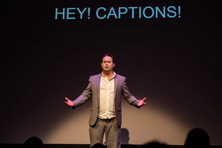 Deaf public speaker Nathan Jesper has arrived at his venue desperately late. As he launches into his speech, he soon realizes that things are not what they seem. Written and performed by Deaf actor Chris Dodd, Deafy is a stand-up/sit-down tragicomedy blending ASL, the spoken word and surtitles, which leads you on an unexpected journey of belonging.